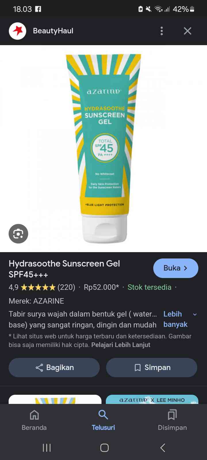 Nagih banget pake sunscreen ini. Teksturnya ringan dan langsung nyerap ke kulit. Ga lengket, bikin kulit adem, lembap, dan ga keliatan berminyak. Murah pula di kantong dan dapet lumayan banyak. Bakal bolak balik beli sih ini sunscreen dan mungkin ga akan ganti ke yang lain. 🤭💕